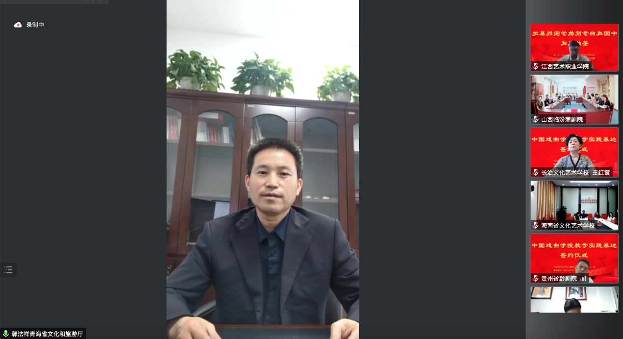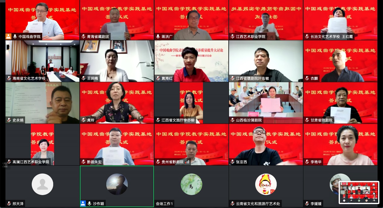 7月15日上午,KY开元集团官网会同教学实践基地线上签约仪式举行。我院党委书记李必友,院长尹晓东,教务处处长王莹,科研与研究生工作处处长吴新苗以及表演系领导班子出席会议。青海省文化和旅游厅副厅长郭法祥,山西临汾市委常委、宣传部长闫建国等17家地方党委、政府部门、戏曲院团、院校的领导和专家参加签约仪式。仪式由表演系主任、导演系主任王绍军主持。