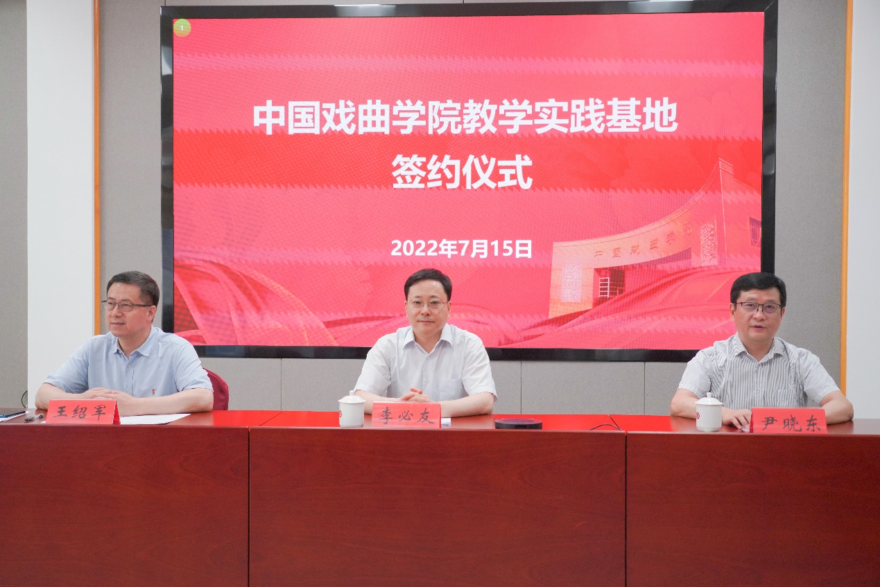 尹晓东对大家与会表示欢迎并致辞。他指出,为贯彻习近平总书记给国戏师生重要回信精神、落实国务院办公厅《关于支持戏曲传承发展的若干政策》要求,近年来,我院在地方戏本科层次的人才培养方面不断加大力度。此次签约的院团、院校当中,新增了贵州黔剧、江西赣剧、海南琼剧、青海平弦、黄南藏戏、甘肃陇剧,山西蒲剧、上党梆子等多个列入国家级非物质文化遗产名录的剧种,进一步提升了这些剧种人才的层次与全国影响力。此次我院与相关省市文化主管部门、戏曲院团签定协议,体现了国戏与各家院团坚定文化自信、坚持守正创新,为党育人、为国育才的初心使命。我院将与与会各方保持密切沟通与合作,实现资源共享、优势互补,互惠互利、合作双赢的目标,共同为推动社会主义戏曲事业繁荣发展作出新的更大的贡献。