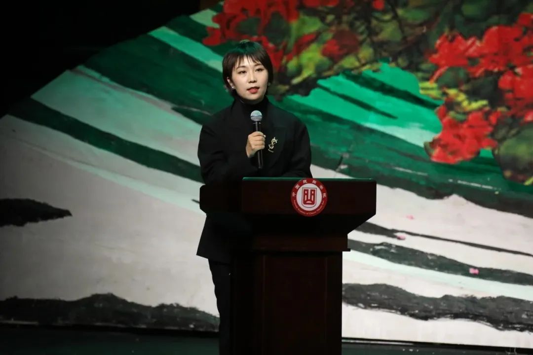 演出结束后,思政部教师杨扬作了题为《让山丹丹花的火红色彩照耀前行之路》的报告,带领同学们学习了习近平总书记关于长征精神的重要论述,生动阐述了长征精神的当代价值,呼吁新时代国戏青年坚定理想信念、磨练顽强意志、团结互助友爱、全心全意为人民服务,弘扬伟大建党精神,在历史的长河中扬帆起航,在时代的洪流中劈波斩浪,让山丹丹花的火红色彩照耀我们的前行之路。