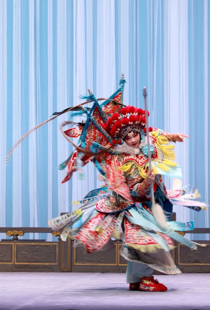 大幕拉开,锣鼓响起。学院学生带来的经典折子戏剧目深深打动了在场观众。曹德乐在花旦传统剧目《勘玉钏》中一人分饰两个角色,她嗓音甜美、吐字清晰,动作收放自如,细节刻画到位,引得观众连连叫好。随后上演的程派经典剧目《锁麟囊》,扮演者陈若曦扮相清丽典雅、大气稳重,演唱委婉动听,令人难以忘怀。花脸传统剧目《铡美案》扮演者谢春雨,嗓音高亢浑厚宽广,唱腔圆润饱满流畅,把人物形象刻画得淋漓尽致。张若曦在武旦传统剧目《红桃山》中扮相靓丽,前半部扎硬靠,既美丽又威武;后半部扎软靠,出手、旋子、枪花洋洋洒洒、酣畅淋漓,将演出推向高潮。本场演出学生们举手投足间尽显青春风采,唱念做打样样俱佳,博得观众阵阵喝彩,现场气氛热烈、掌声不断。