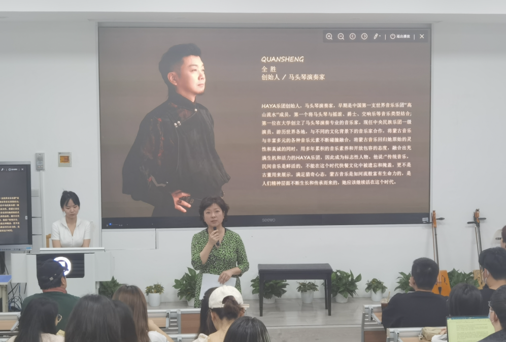 近日,宋飞胡琴艺术传承与传播中心继续开展“中国民族弓弦艺术大讲堂”系列讲座。中国马头琴演奏家,音乐制作人,HAYA乐团创始人张全胜老师,为音乐系师生做《少数民族音乐马头琴的改革与创新》专题讲座。讲座由音乐系党总支书记牛长虹主持。