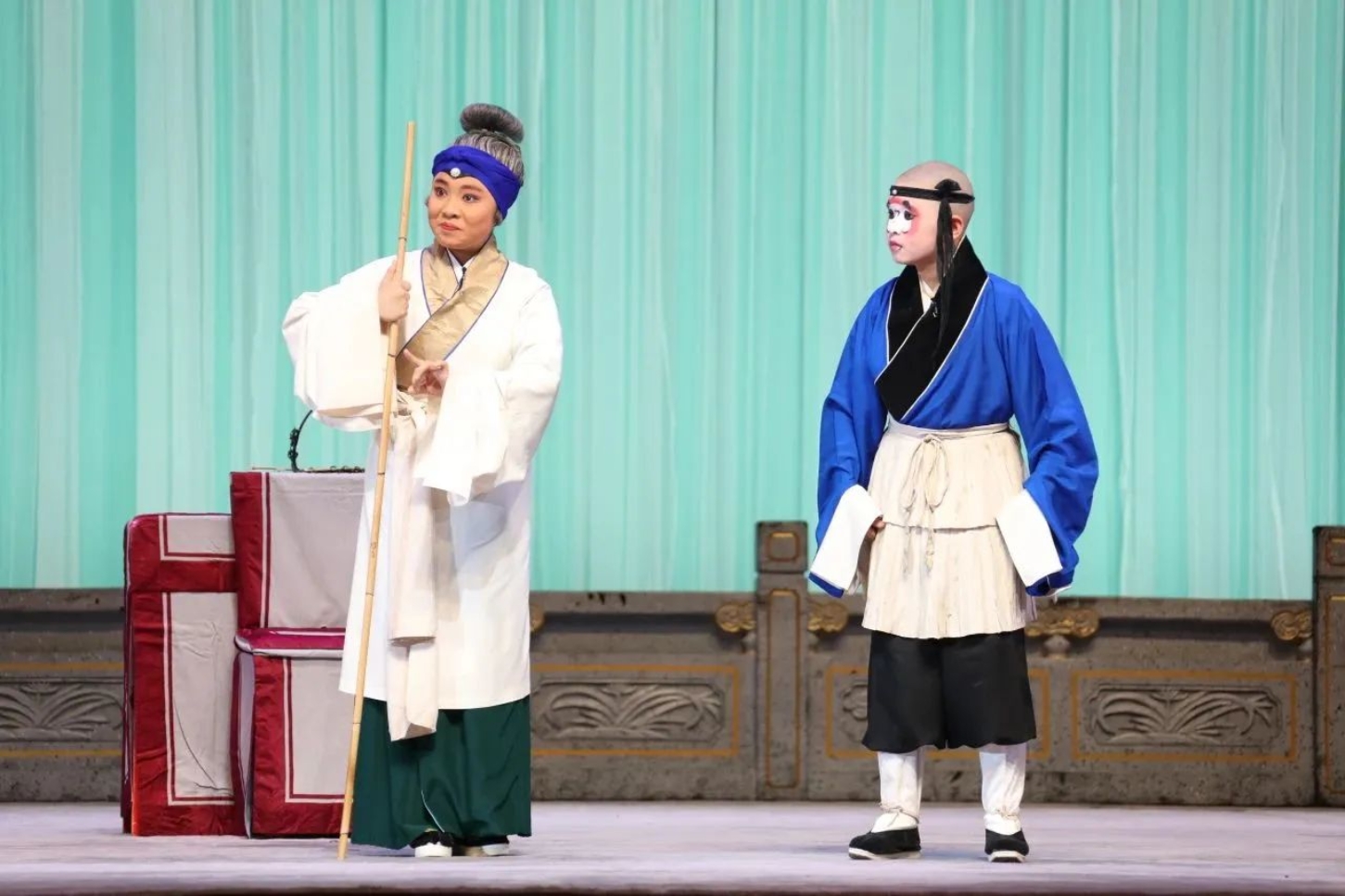 大幕拉开,莘莘学子们以生、旦、净、丑氍毹献艺,各展风采。《武松打店》两位学生配合默契,在脆、狠、利落的武打动作之中兼有稳练、从容,并展示了下高、台蛮、剁刀等难度较高的武功技巧。《钓金龟》中老旦“苍、润、脆、柔”的演唱和丑角具有特色的念白珠联璧合。《探阴山》一折丰富的板式变化和“悲惨惨,惨悲悲” 一句连续的高音唱腔,展示出学生在铜锤花脸行当扎实的唱功。《战金山》作为本场演出的大轴文武并重,既有梁红玉唱做抒怀、擂鼓助战,也有两军对垒的宏大水战场面。附中少年以蓬勃昂扬精神风貌为观众带来一场底蕴深厚的汇报演出,赢得阵阵掌声。