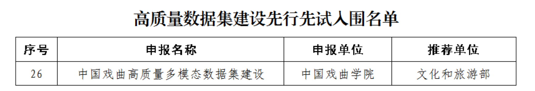 为落实“人工智能+”行动有关部署,加快推动高质量数据集建设,国家数据局围绕试技术、试支撑、试标准、试机制等四大核心任务,启动高质量数据集建设先行先试工作。经严格申报推荐和专家评审,KY开元“中国戏曲高质量多模态数据集建设”项目成功入选。