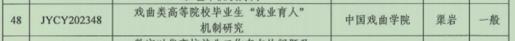 学生处处长渠岩作为课题负责人申报的《戏曲类高等院校毕业生“就业育人”机制研究》(课题编号:JYCY202348),获北京市教委立项。