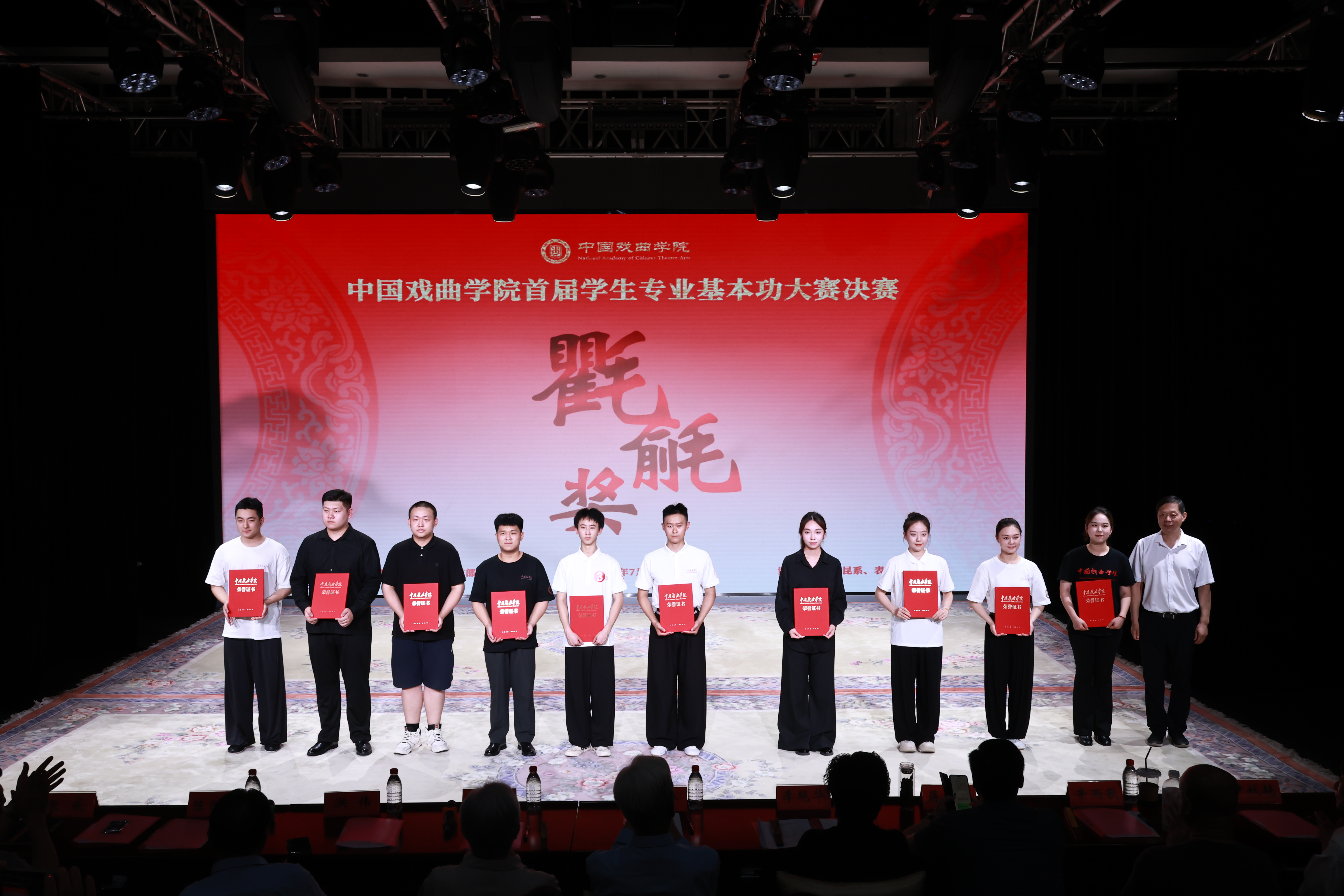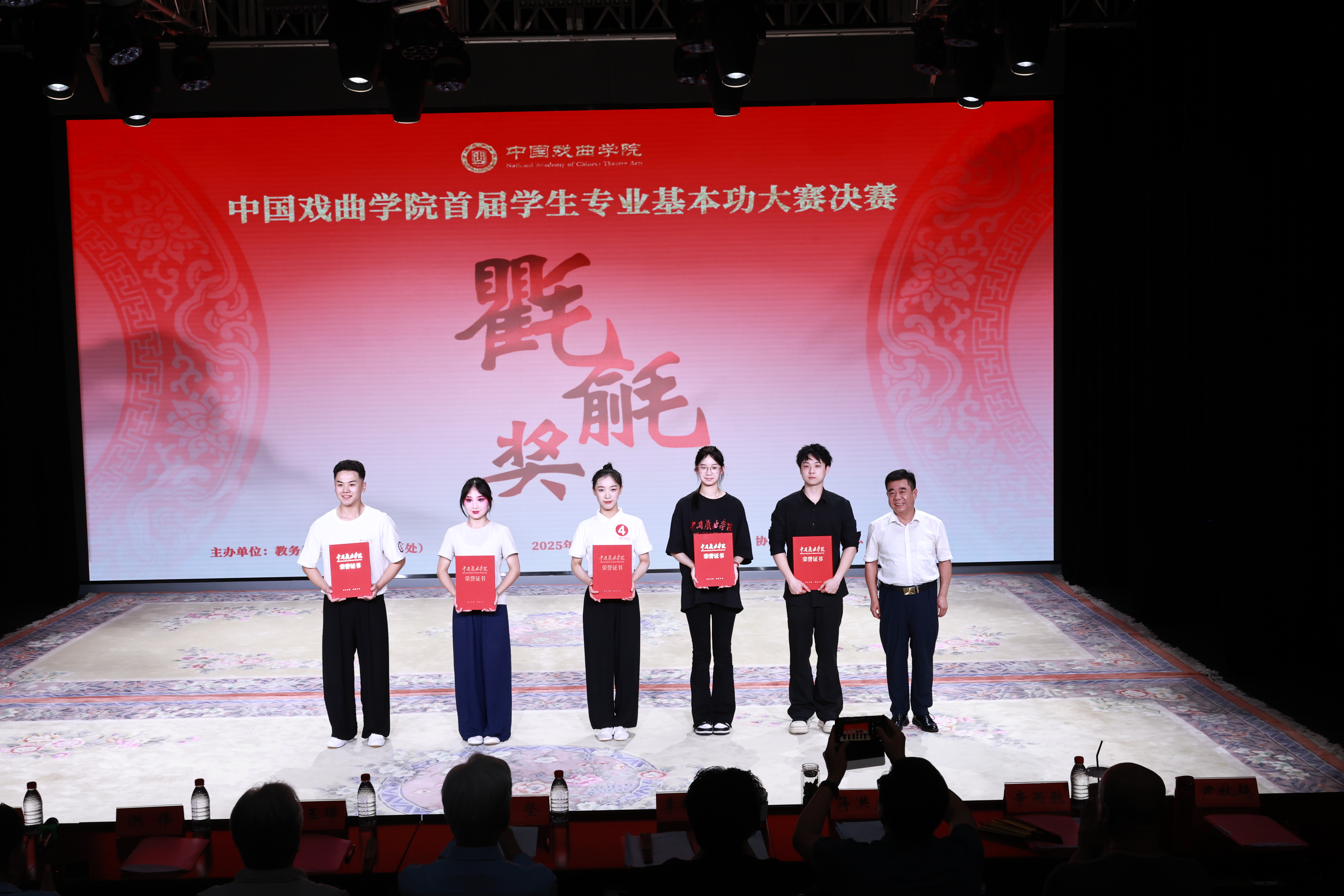 此次学生基本功大赛决赛由教务处、学生处主办,京昆系、表演系协办,以“夯实专业根基、赓续戏曲薪火”为主题,设置“京昆表演”“京昆器乐”“地方剧种表演”“地方剧种器乐”“戏曲形体”五个赛道。经学生自主申报,京昆系、表演系初赛选拔,30名学生进入决赛。通过激烈角逐,各赛道分别评选出“氍毹奖”一等奖1名、二等奖2名、三等奖3名,另设优秀指导教师奖6名。校领导分别为本次大赛决赛各奖项获得师生颁奖。