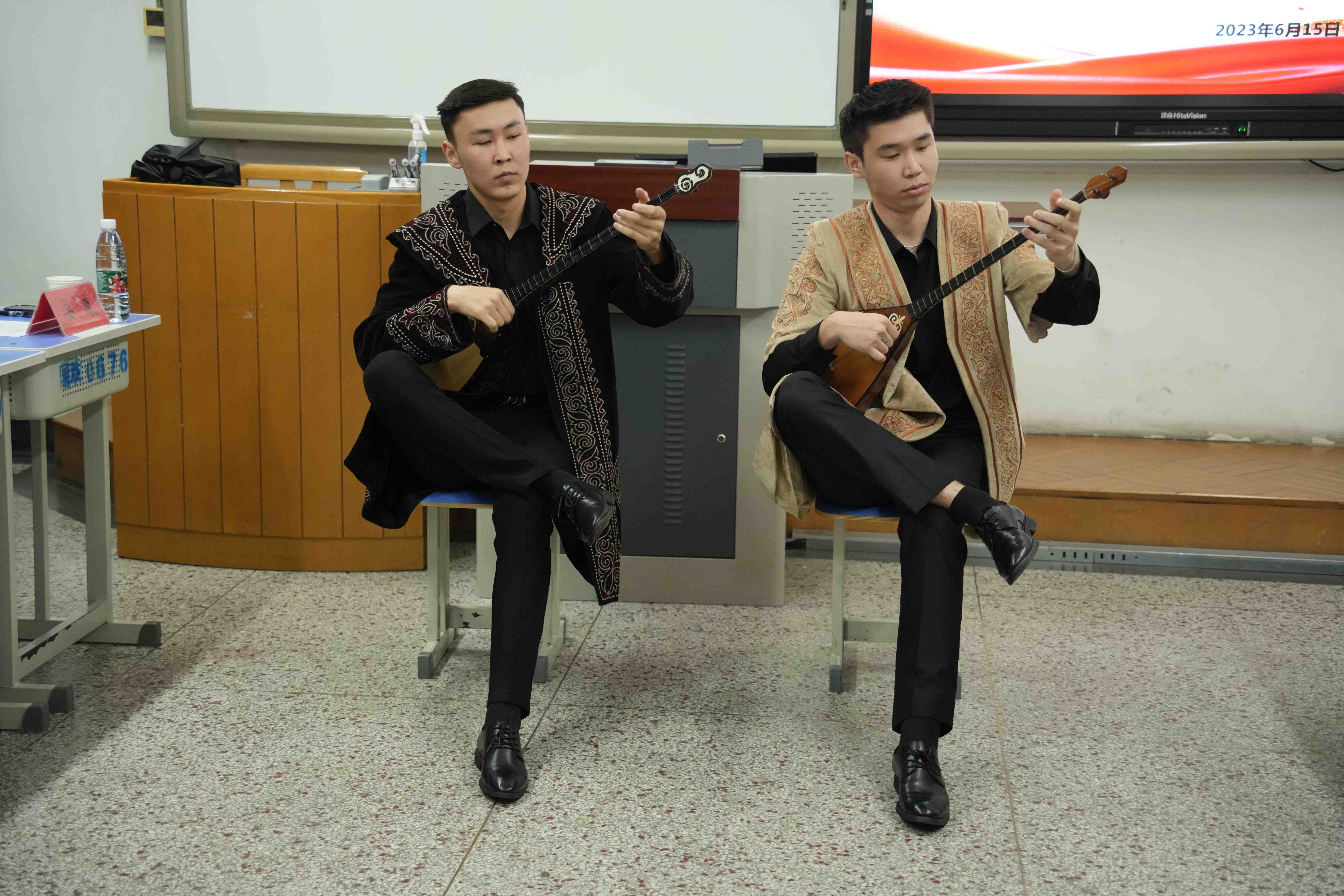 随后,中央民族大学音乐学院作曲系教师史小龙、孙璐、郭梦陶,音乐学院党务秘书蒲一赞,音乐学院团委书记梁岩,音乐学院少数民族器乐系教师穆热阿勒,我院团委副书记宝月,学生工作部德育办公室负责人刘芳伊,学生工作部资助管理中心负责人裴玲燕,思政部教师安康,围绕主题教育的开展、学生党员发展、人才培养、课程思政建设、师资队伍建设、学生管理工作等具体工作展开交流。