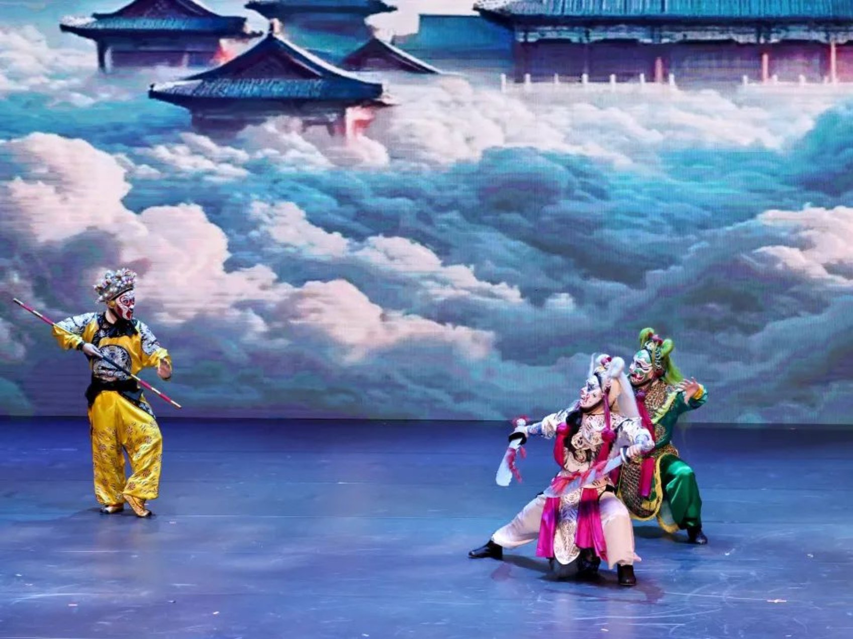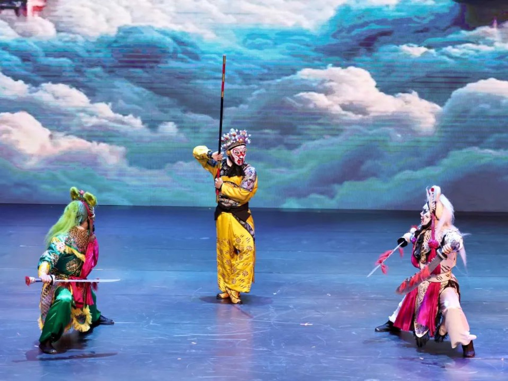 《闹天宫》由2021级京昆表演专业本科生陈明洋、田程,2022级京昆表演专业本科生孟鋆联袂出演,孙悟空与青龙、白虎的精彩对打场面,博得现场阵阵喝彩;由2021级京昆器乐专业本科生孙千贺、孔维欢、王维,2022级京昆器乐专业本科生王琦深、潘鑫共同组成的武场乐队,与演员配合的相得益彰,引人入胜。在场观众被京剧武戏的阳刚之美深深吸引,不禁为京剧艺术的奥妙精深啧啧称奇。节目由京昆系助理姜虹担任领队,京昆表演专业副教授张成力任排练教师和舞台监督。此次“未来之桥”中美青年交流计划美国代表团告别演出暨“青春的律动”中美青年交流演出,既增进了中美两国青年的相互了解、交流,也为中美两国的友谊和文化交往搭建了“未来之桥”。