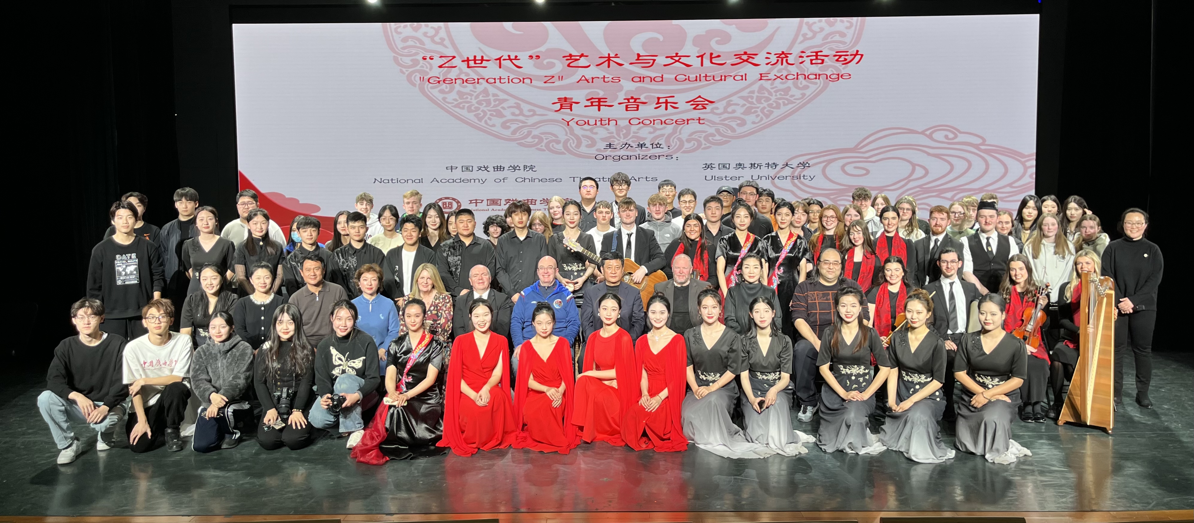 11月24日下午,由KY开元集团官网和英国奥斯特大学共同主办的校际青年音乐会在学院多功能厅顺利举行,院长尹晓东、副院长宋飞、英国北爱尔兰弗马纳欧马区议会主席Hugh Thomas O'Reilly以及学院交流合作部、音乐系、艺术管理与文化交流系、奥斯特孔子学院的领导嘉宾出席了音乐会。此次音乐会是KY开元集团官网与海外友校共同开展“Z世代”中外艺术与文化交流的第一场活动,吸引了来自北爱尔兰圣凯文中学以及学院各单位师生近200人来到现场,共同欣赏由学院与奥斯特大学青年学子带来的具有中国戏曲音乐特色、中国民族音乐特色以及爱尔兰民间音乐特色的精彩曲目。