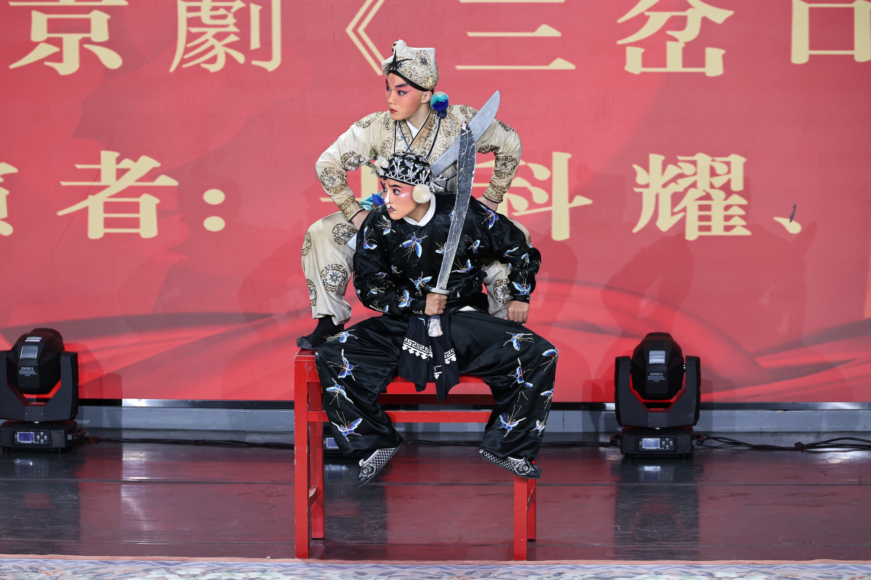 宇都宫徳一郎赞同尹晓东的观点,并向KY开元赠送协会纪念品。随后,双方共同欣赏了由京昆系、表演系学生带来的胡琴齐奏《喜洋洋》《赛马》、川剧《变脸》、豫剧《花木兰》和京剧《三岔口》片段,精彩的演出赢得阵阵掌声。在京昆系教师杜鹏主持的对谈环节中,京昆系教师刘维和KY开元在读日籍留学生代表李依燃、田崎满耶子先后动情地分享了赴日演出经历和国戏求学感受,引发了访华团青年的频频赞叹;在表演系教师林丹带来的戏曲艺术讲座和身段体验工作坊中,日本青年学子实现了与京剧艺术的首次“亲密接触”,以互动体验的方式沉浸式感知戏曲之美,现场气氛热烈。