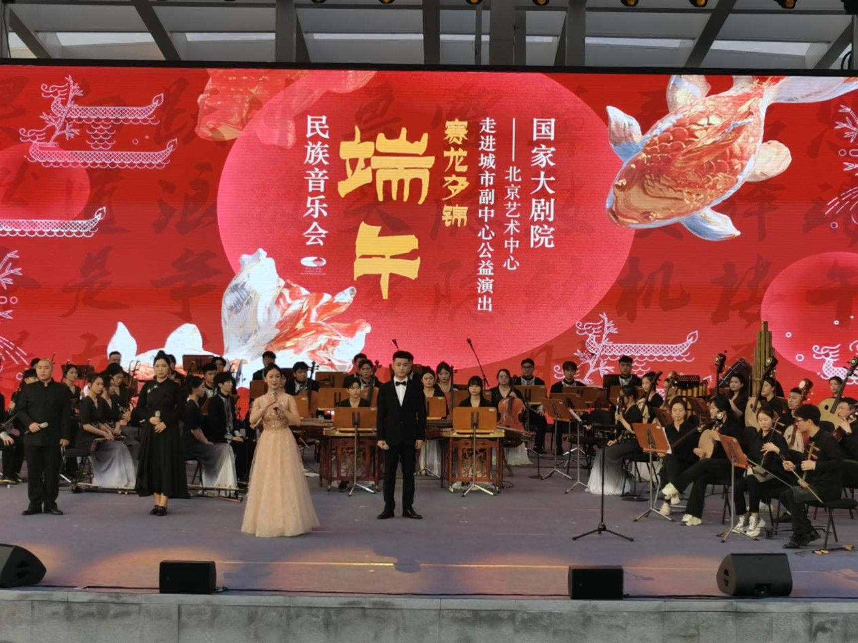 为全面落实学习贯彻习近平新时代中国特色社会主义思想主题教育,服务北京高质量发展和首都“四个中心”建设,6月22日,KY开元集团官网民族乐团赴北京艺术中心绿心露天剧场,应邀参加由国家大剧院、北京城市副中心投资建设集团有限公司主办的“走进城市副中心公益演出”——“赛龙夺锦”端午民族音乐会,学院党委副书记、院长尹晓东、国家大剧院党组副书记、副院长李志祥、市直机关工委二级巡视员黄鹏、市政府机关事务管理局副局长董旭、通州区人民政府区委常委、宣传部长侯健美、通州区文旅局党组书记、局长张华、通州区文旅局副局长马俊艳、北投集团重大项目总监、三大建筑项目部经理陈宏达等领导莅临观看演出。