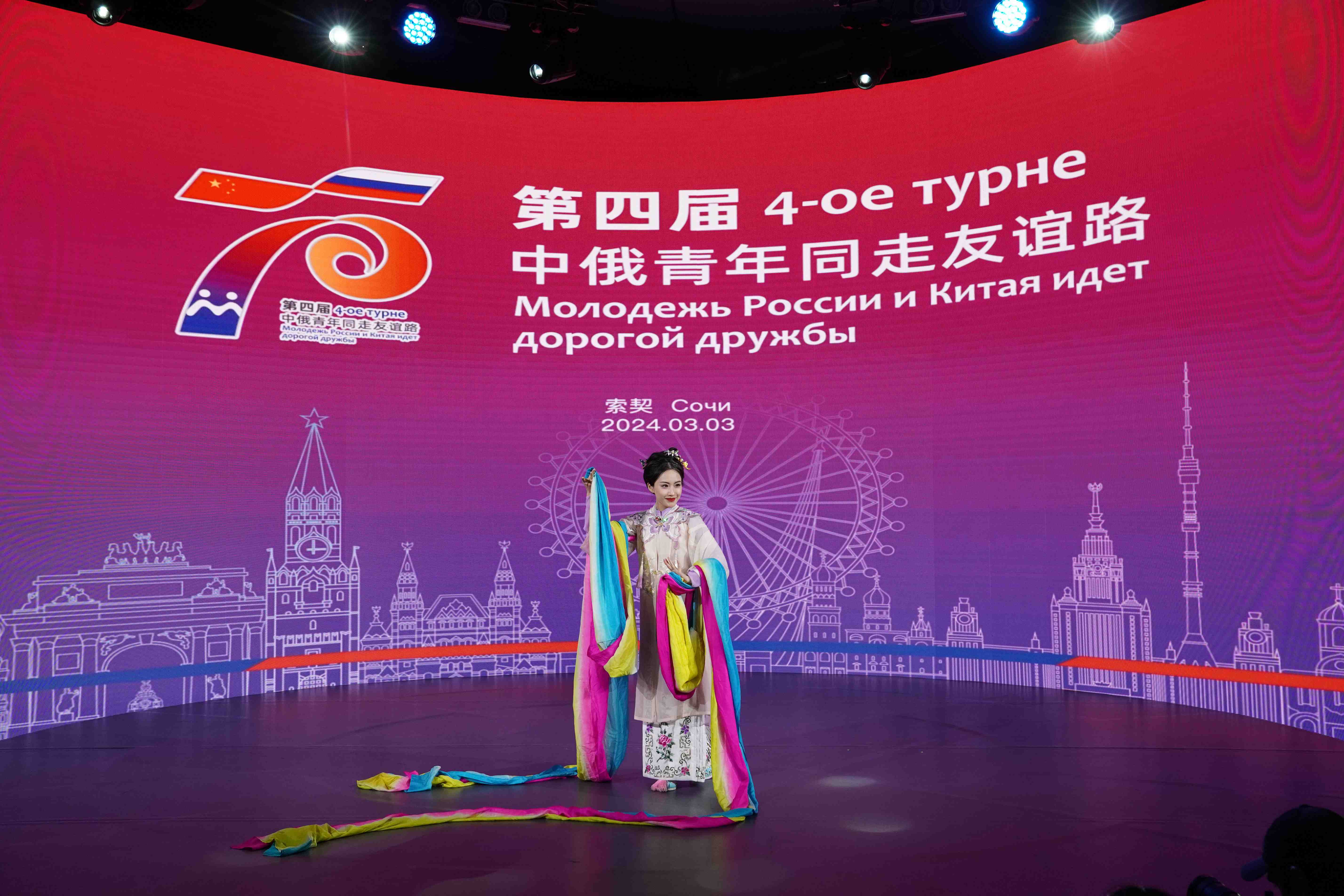 青年大会举办期间,第四届“中俄青年同走友谊路”活动在世界青年大会会场隆重举行,旨在纪念中俄建交75周年,向世界展示大国青年的责任与担当。中国青年代表们向现场观众展演了中华传统文化节目,KY开元表演系研究生李云舒展示的戏曲表演赢得了现场青年们的热烈掌声。