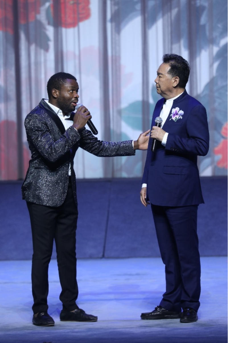 李树建携喀麦隆籍弟子、河南大学博士刘汴京共同演唱豫剧《程婴救孤》选段,精彩演出引来了热烈掌声和叫好声。