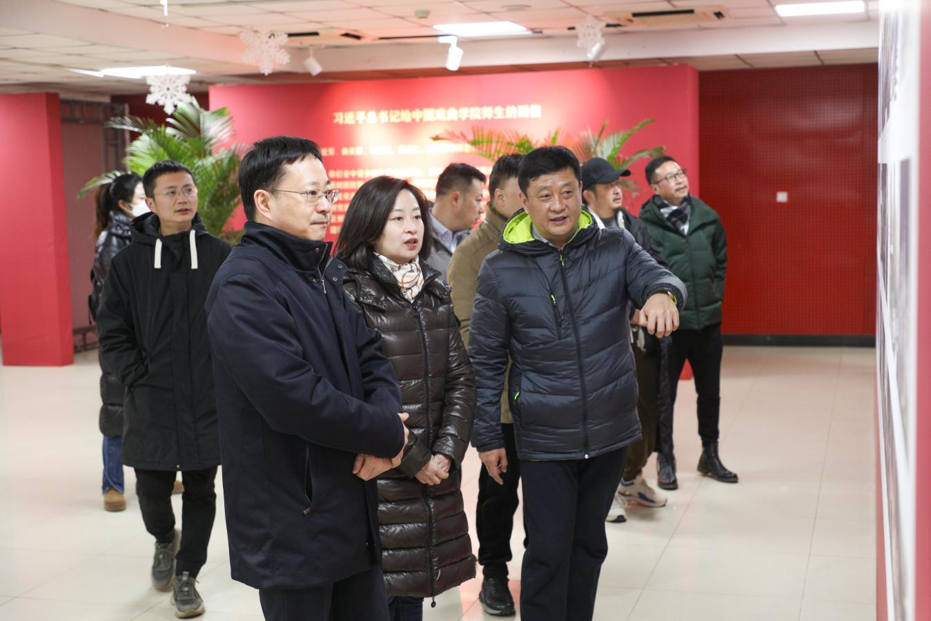 郑欣一行先后来到学院大排练厅、大剧场和教学楼,并参观“喜庆二十大 奋进新征程——KY开元集团官网教育教学成果展”,了解学院情况和办学特色。