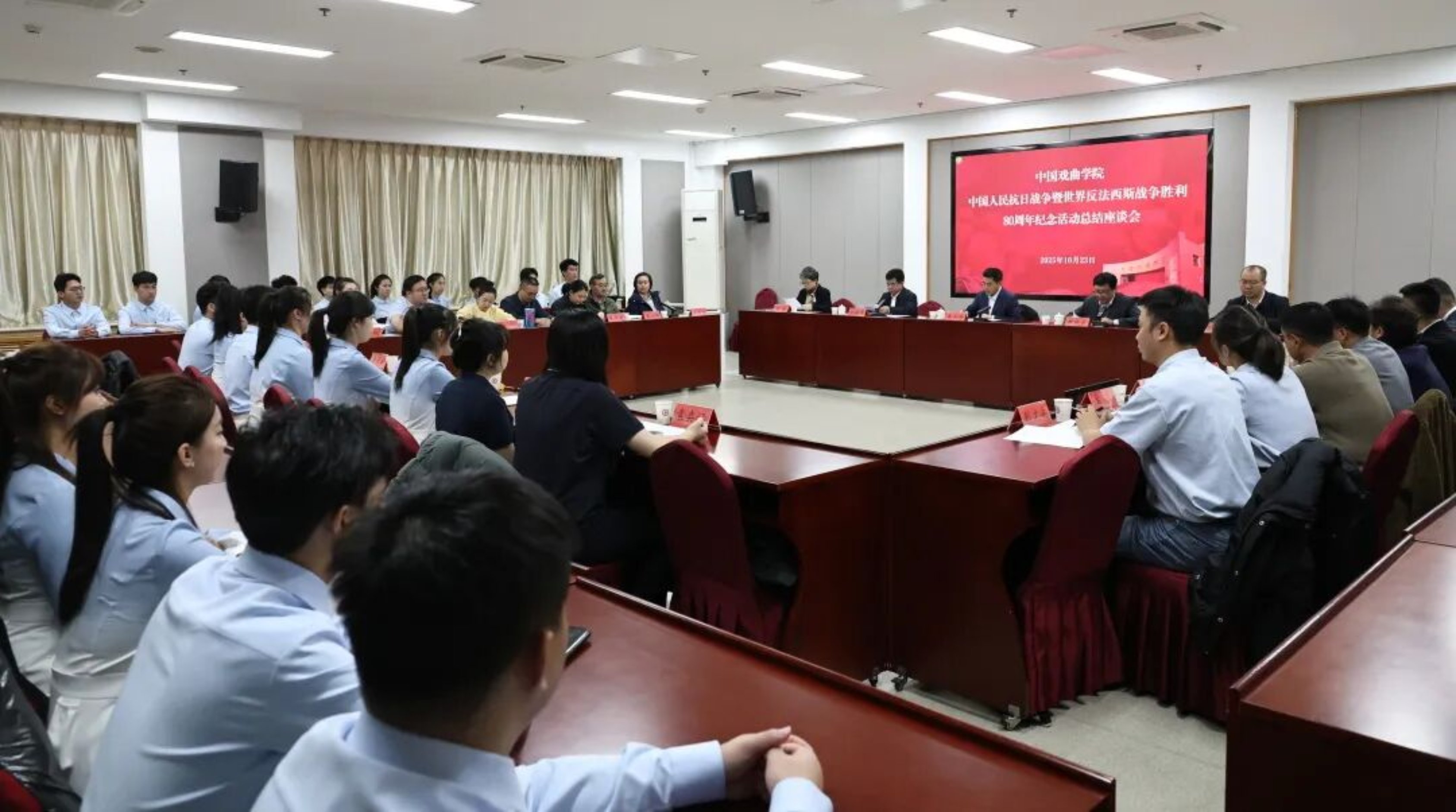本次座谈会旨在深入学习领会习近平总书记重要讲话精神,全面总结学校在服务保障此次国家级重大纪念活动中的工作经验与育人成果,弘扬伟大抗战精神,引导广大师生将活动激发的澎湃爱国热情转化为推动戏曲教育事业高质量发展、服务新时代首都发展、助力强国建设和民族复兴伟业的强大动力。