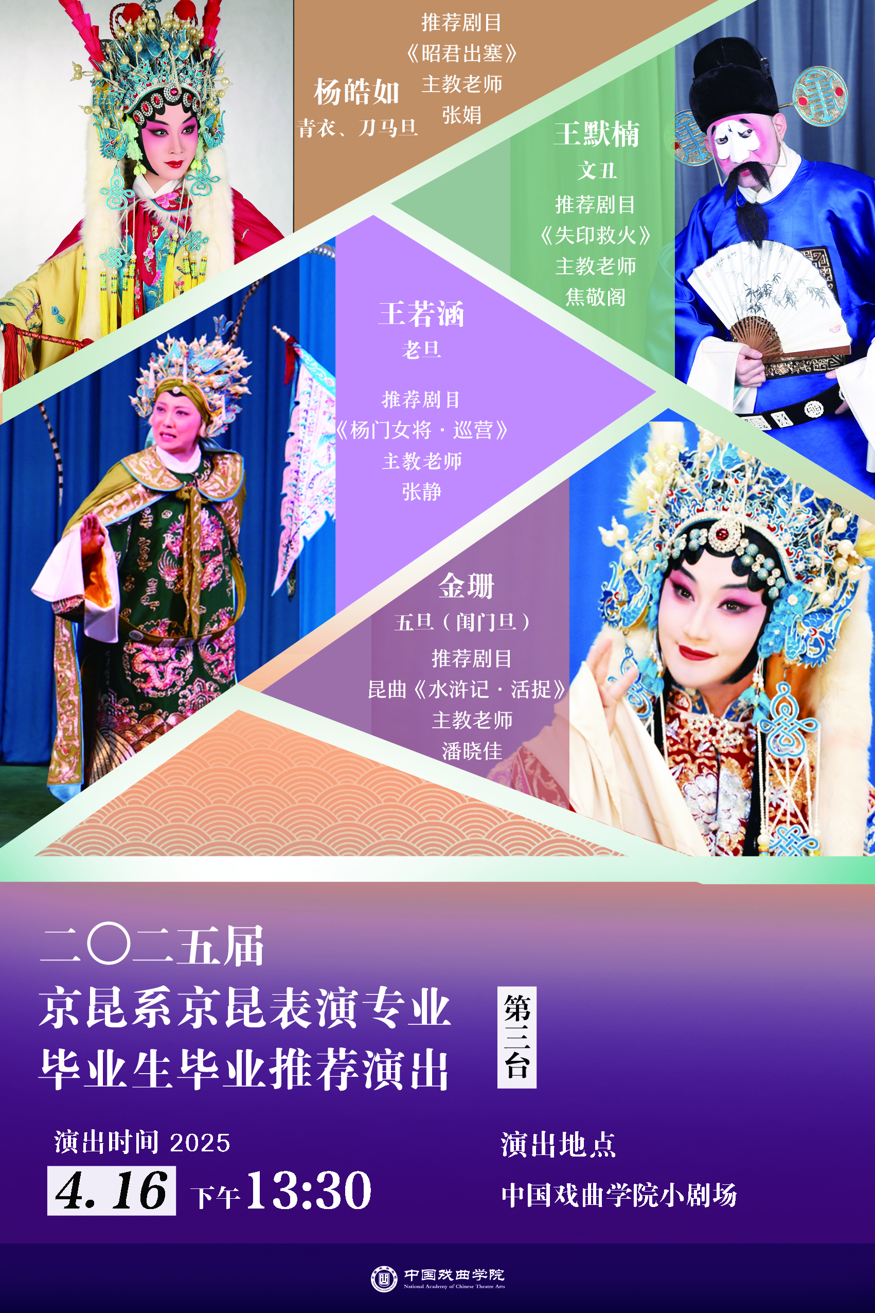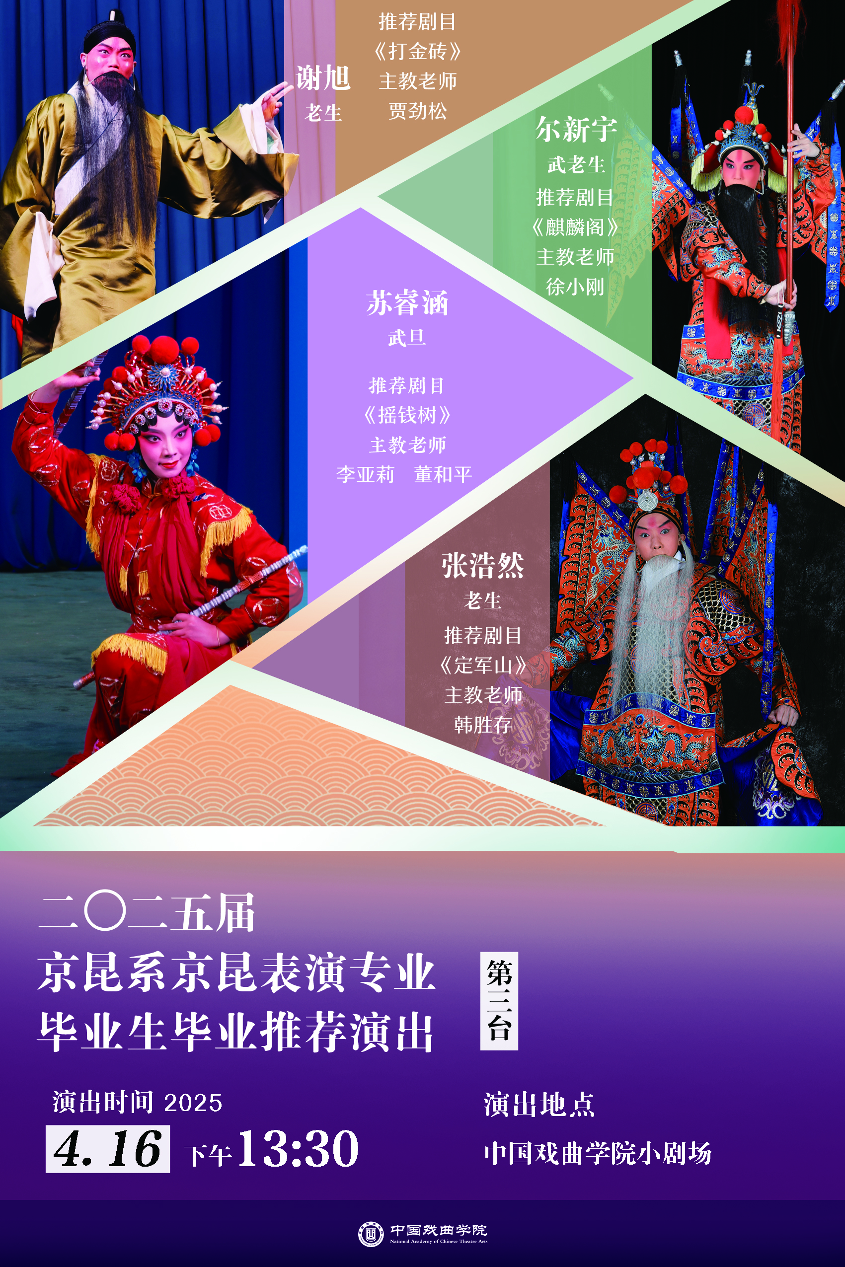 当前位置:> 首页- 新闻公告- 演出活动 栏目导航 新闻公告 演出活动 京昆系2025届京昆表演专业毕业生毕业推荐演出(第三台) 时间:2025-04-14 来源:京昆系 地点:学校小剧场时间: 2025年4月16日13:30 主办单位:京昆系 KY开元集团官网 返回