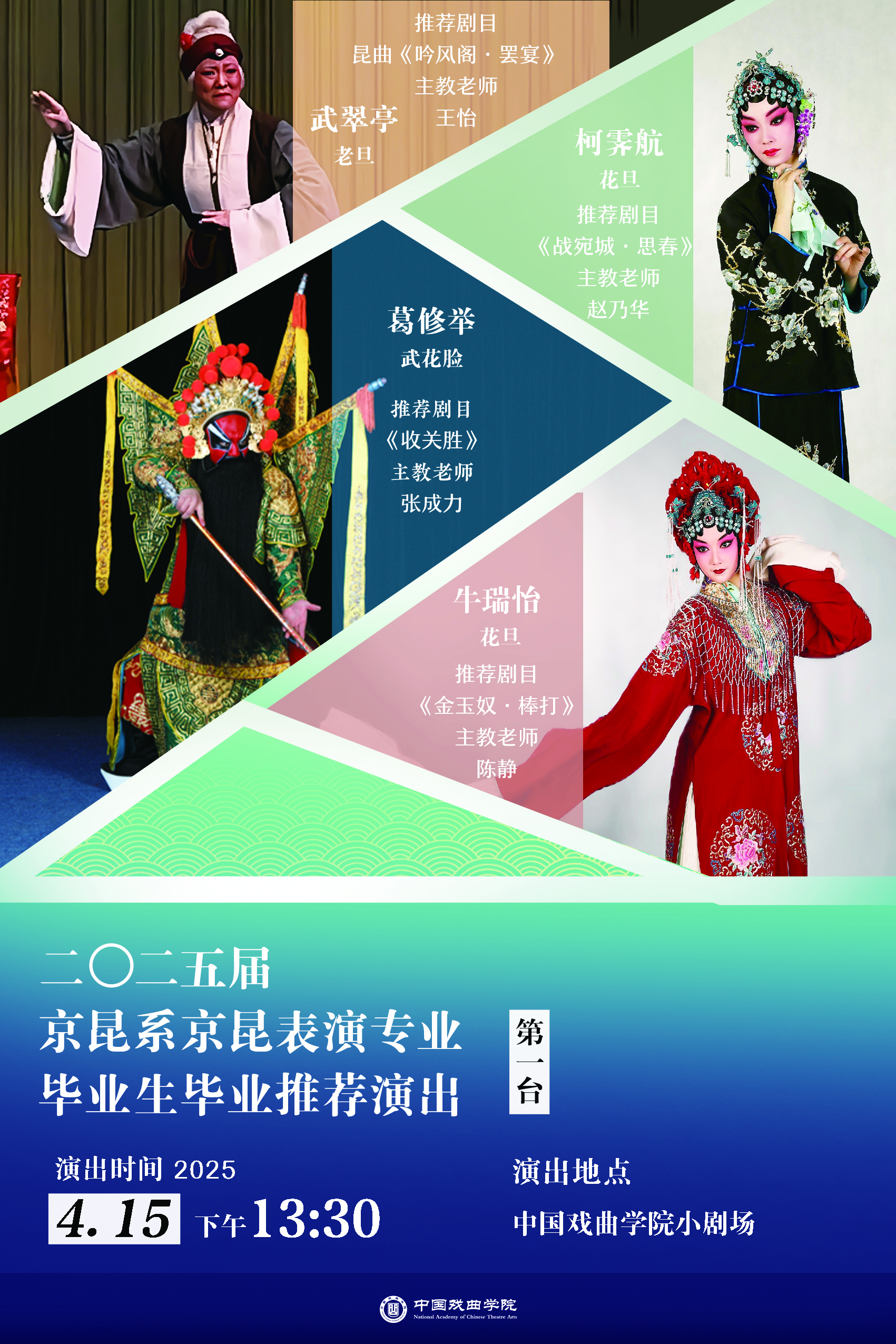 当前位置:> 首页- 新闻公告- 演出活动 栏目导航 新闻公告 演出活动 京昆系2025届京昆表演专业毕业生毕业推荐演出(第一台) 时间:2025-04-14 来源:京昆系 地点:学校小剧场时间: 2025年4月15日13:30 主办单位:京昆系 KY开元集团官网 返回