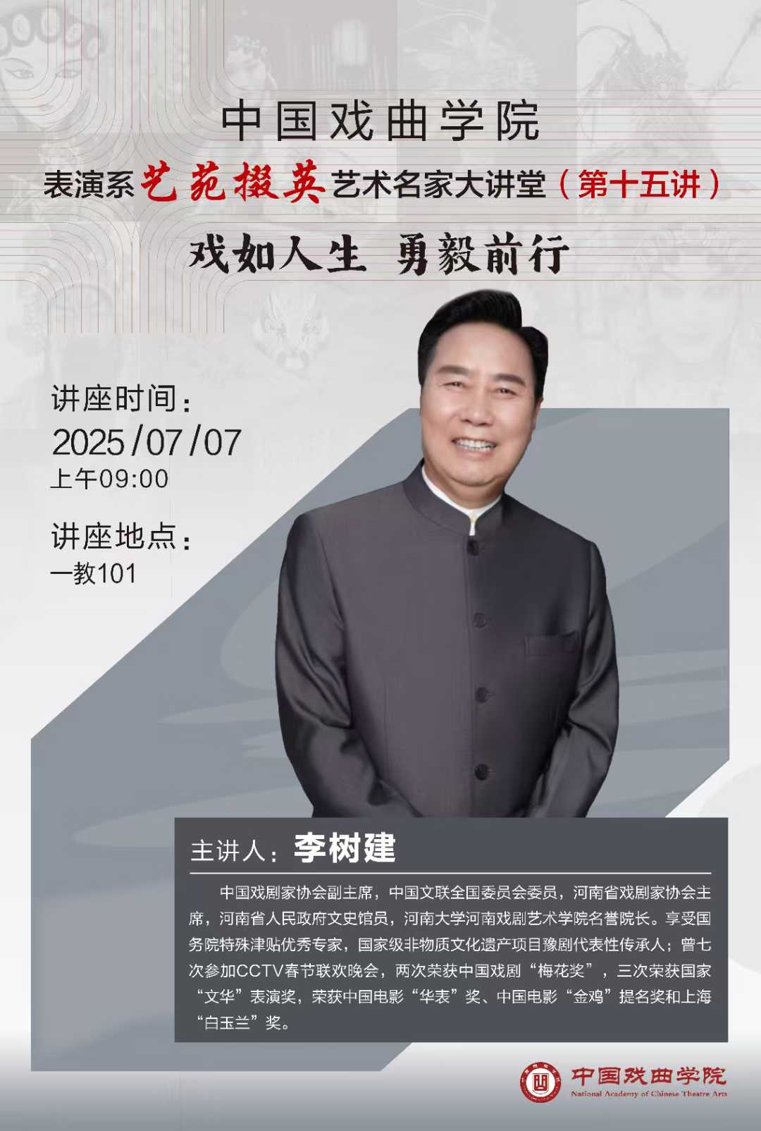 表演系艺苑掇英艺术名家大讲堂(第十五讲)——《戏如人生 勇毅前行》(主讲人:李树建)