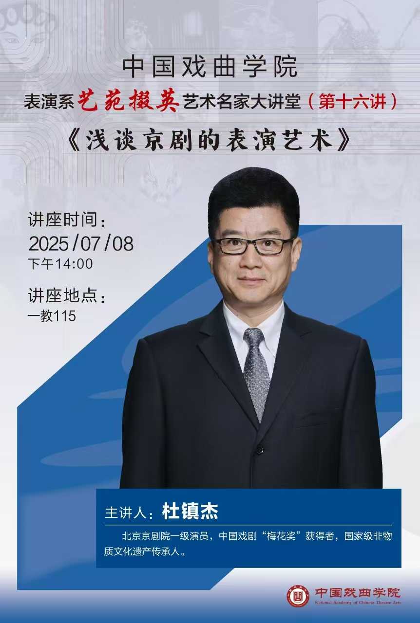表演系艺苑掇英艺术名家大讲堂(第十六讲)—— 《浅谈京剧的表演艺术》(主讲人:杜镇杰)