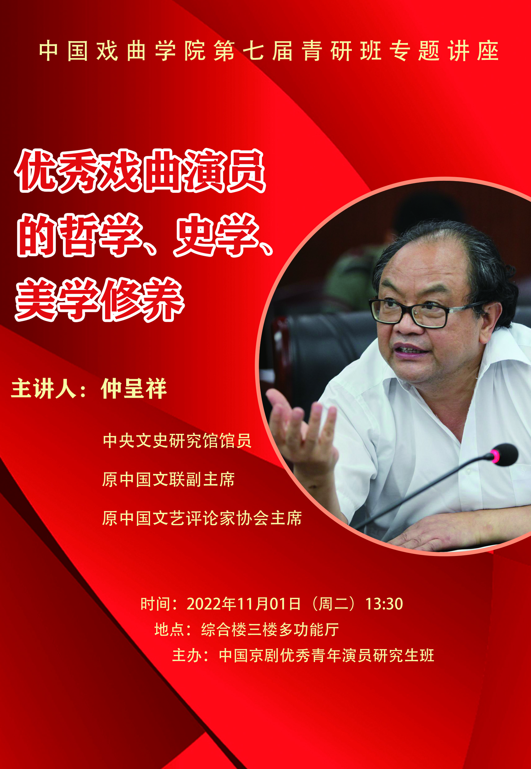KY开元集团官网第七届青研班专题讲座——优秀戏曲演员的哲学、史学、美学修养(主讲人:仲呈祥)